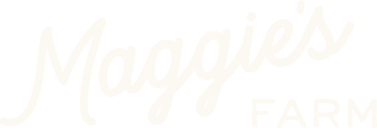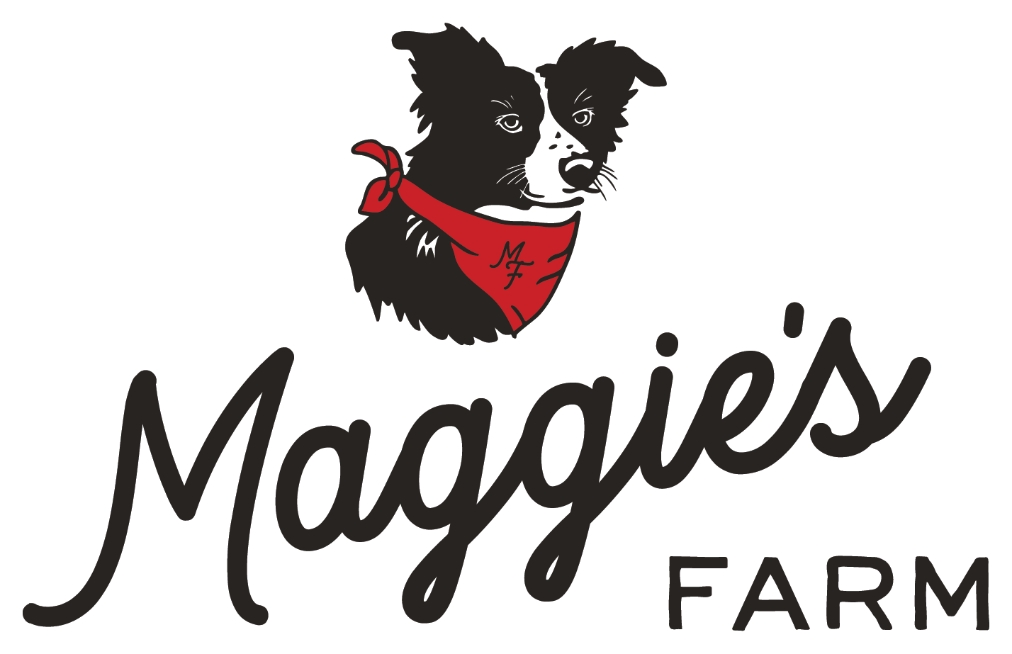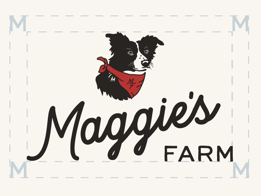 We simplified the Maggie illustration to be legible at smaller sizes and added in some key Maggie traits like her favorite red bandana and nose wiskers. We went with a clean script for “Maggie’s” that offered friendly, farm vibes and paired it with a clean, handwritten san serif for contrast.