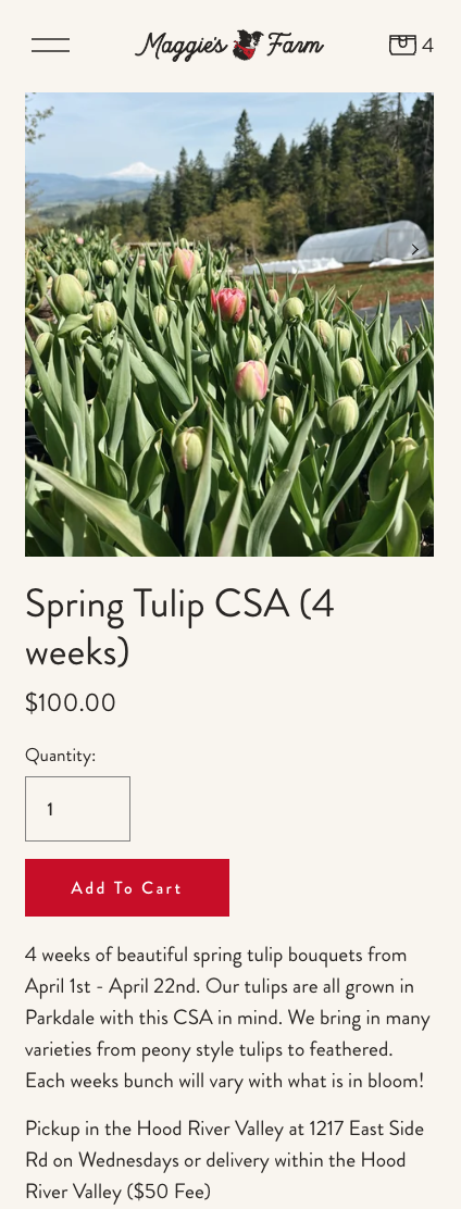 It has ecommerce built in, which was essential for Maggie’s Farm. Their last websites ecommerce gave them numerous issues when it came to fulfillment. They needed the ability to have local pick up and delivery options at checkout per product. Along with offering shipping for merch. Squarespace has all of this built in and is easy to set up and keep up-to-date with real time inventory.