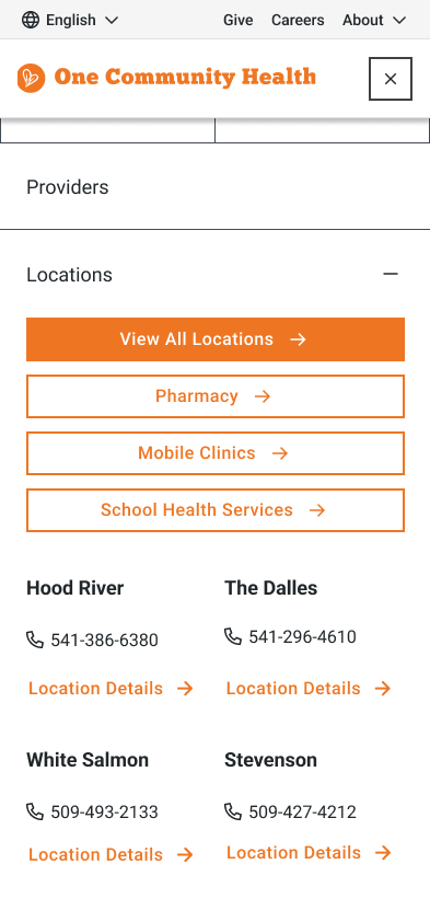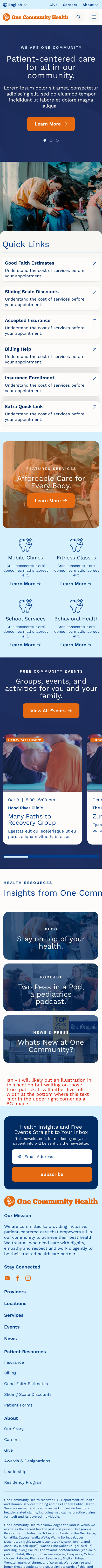 One Community Health is a local, nonprofit healthcare clinic serving communities throughout the Columbia River Gorge. Their mission is to advance health and social justice for everyone. Healthcare is already complex, and OCH’s website reflected that confusion. Given the breadth of their services, they needed not just a new website, but a thoughtful restructuring of information to create an experience that is easy to navigate for all user personas.